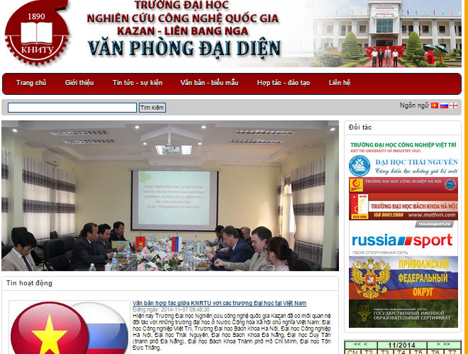 Website được xây dựng với 3 ngôn ngữ: Việt, Nga, Anh nhằm phục vụ và cung cấp thông tin đầy đủ về thông tin hợp tác giữa Trường đại học nghiên cứu công nghệ quốc gia KaZan - Liên Bang Nga và các trường đại học hàng đầu tại Việt Nam. Trụ sở Văn phòng được đặt tại TP Việt Trì - tỉnh Phú Thọ Địa chỉ truy cập: http://knrtu-vn.com/ |